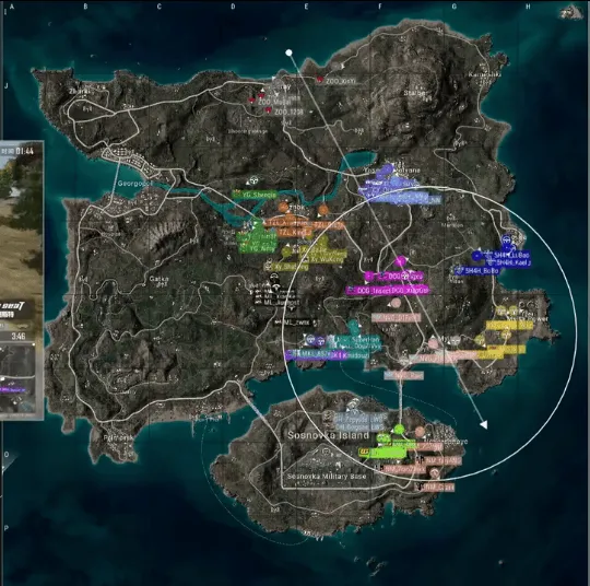 阶段6,圈型刷到农场附近,HQ开车装机GH方向,HQ一换四淘汰GH,另外一边TCY与MKL交战,TCY独狼连续打倒多人后被一颗手雷淘汰,同时NM选择进攻5H4H房区,NM打掉5H4H之后被远点枪线淘汰两人。